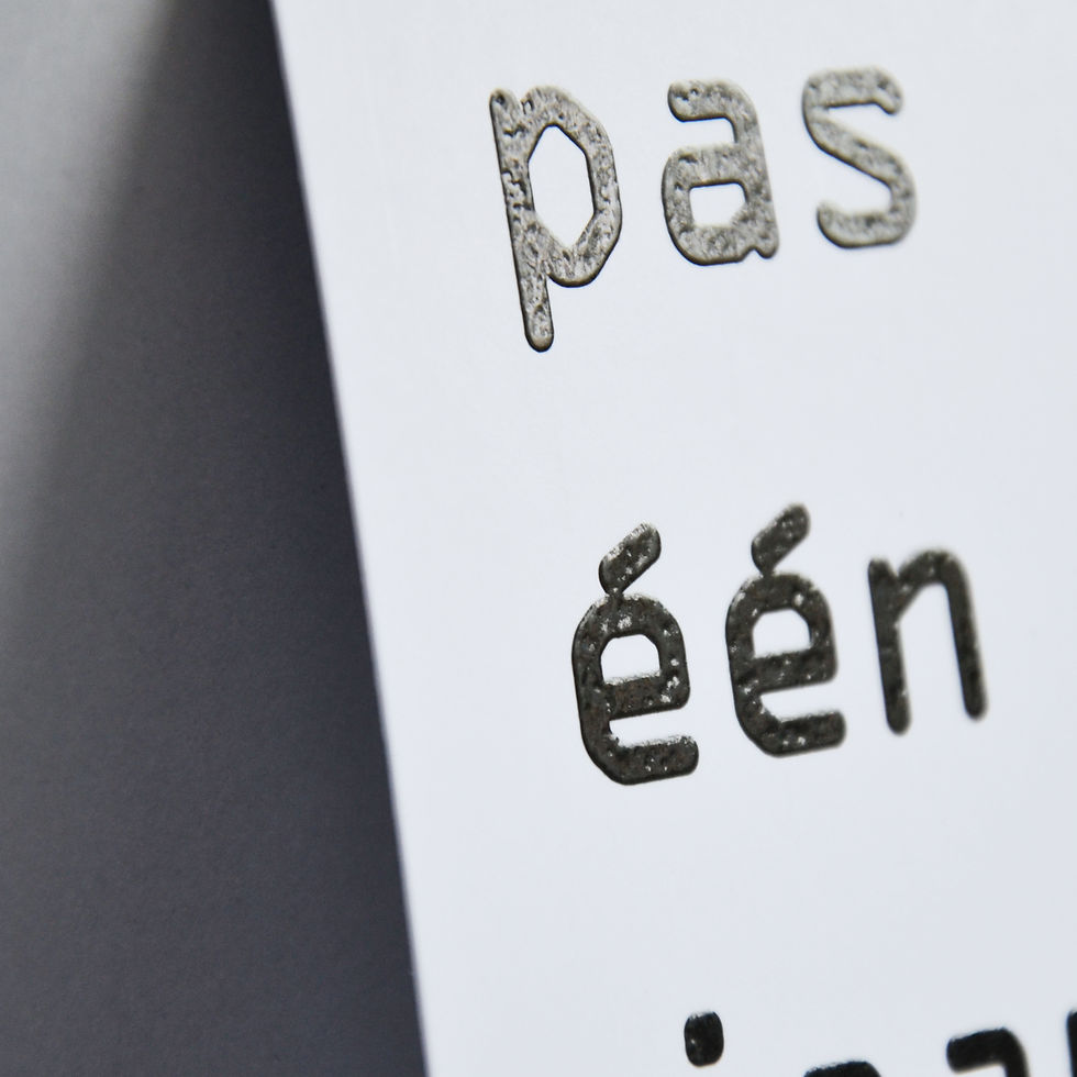 Tessalniettemin is tekstkunner en creaschrijver en dat kun je terugzien aan de teksten op de kaarten. De kaarten hebben een A6-formaat en een speciale reliëfdruk. De collectie is in een paar jaar tijd uitgebreid tot 24 ontwerpen. Ook zijn er posters en af en toe een kerstcollectie.